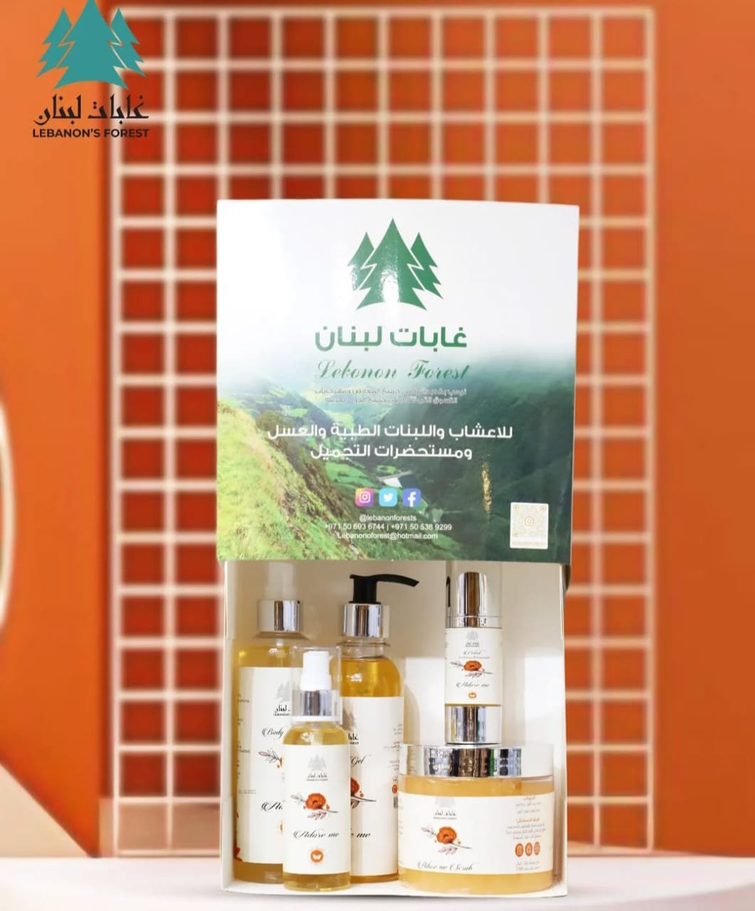A set of 5 pieces of Body oil, Velvet, Shower Gel Scrub, and Splash.